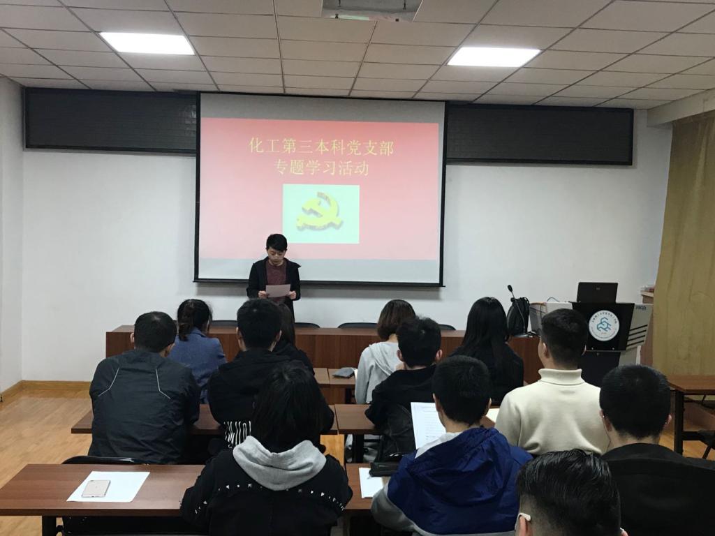 3月22日下午,化工第三本科党支部在化工馆三层会议室召开专题组织生活会,组织支部成员围绕“改革创新,奋发有为”主题开展学习讨论。会议由党支部书记史秀锋主持。