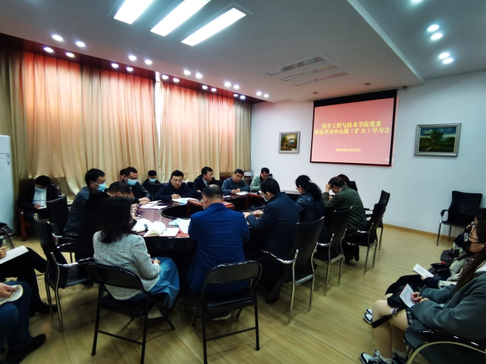 10月26日,公司党委在化工馆二层会议室组织召开理论学习中心组(扩大)学习会,公司党委理论学习中心组成员、各支部书记、系(所、中心)负责人参会,公司党委书记张琤主持会议。