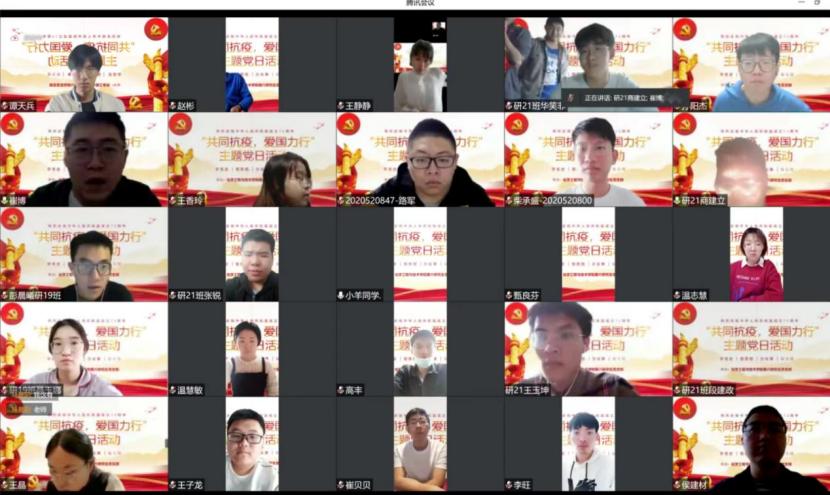 为充分发挥疫情防控中的党支部战斗堡垒作用和共产党员先锋模范作用,加强对静态管理期间研究生的关心和关爱,更好地开展留校研究生疫情防控工作,10月5日上午,公司研究生第六党支部召集全体党员、发展对象及积极分子线上开展了“喜迎二十大 爱国力行 共同抗疫”的主题党日活动。