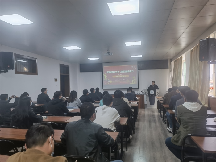 会上,樊荣教授以“擘画发展大计,凝聚奋进伟力”为题作了精彩报告。她以2022年全国两会主要内容为逻辑线索,深入浅出地为大家解读了2022年政府工作报告。从疫情防控、科技创新等实际工作出发,带领大家深刻领会2022年国家经济社会发展面临的挑战。通过分析背景、梳理要点、分享思考,详细讲解了两会提出的理论亮点:“五个必由之路”和“五个有利于”的重要论断。整场报告视角新颖、思路清晰、语言生动,现场学习氛围浓烈。