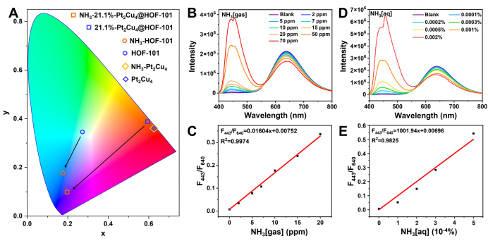 图2. Pt2Cu4@HOF-101的氨气荧光传感性能