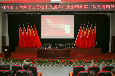 5月9日下午,公司党委在博学馆二层会议室举办学习贯彻党的十八届六中全会精神第二次专题讲座,公司纪委书记翟健教授应邀为公司全体党员、干部作了题为《国际国内党内的严峻挑战形式与全面从严治党》的专题辅导报告。公司全体党员及各系(部)、中心、所负责人参加学习培训,公司党委书记来志斌主持会议。