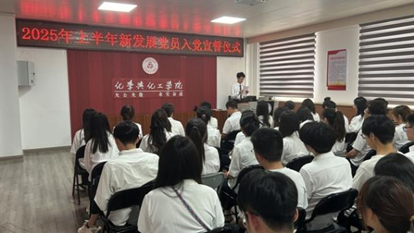 6月17日下午,公司党委在化工馆三层会议室举行2025年上半年新发展党员入党宣誓仪式,公司党委书记张琤、专职组织员、支部书记代表及79名新发展党员参加仪式。仪式由院专职组织员主持。