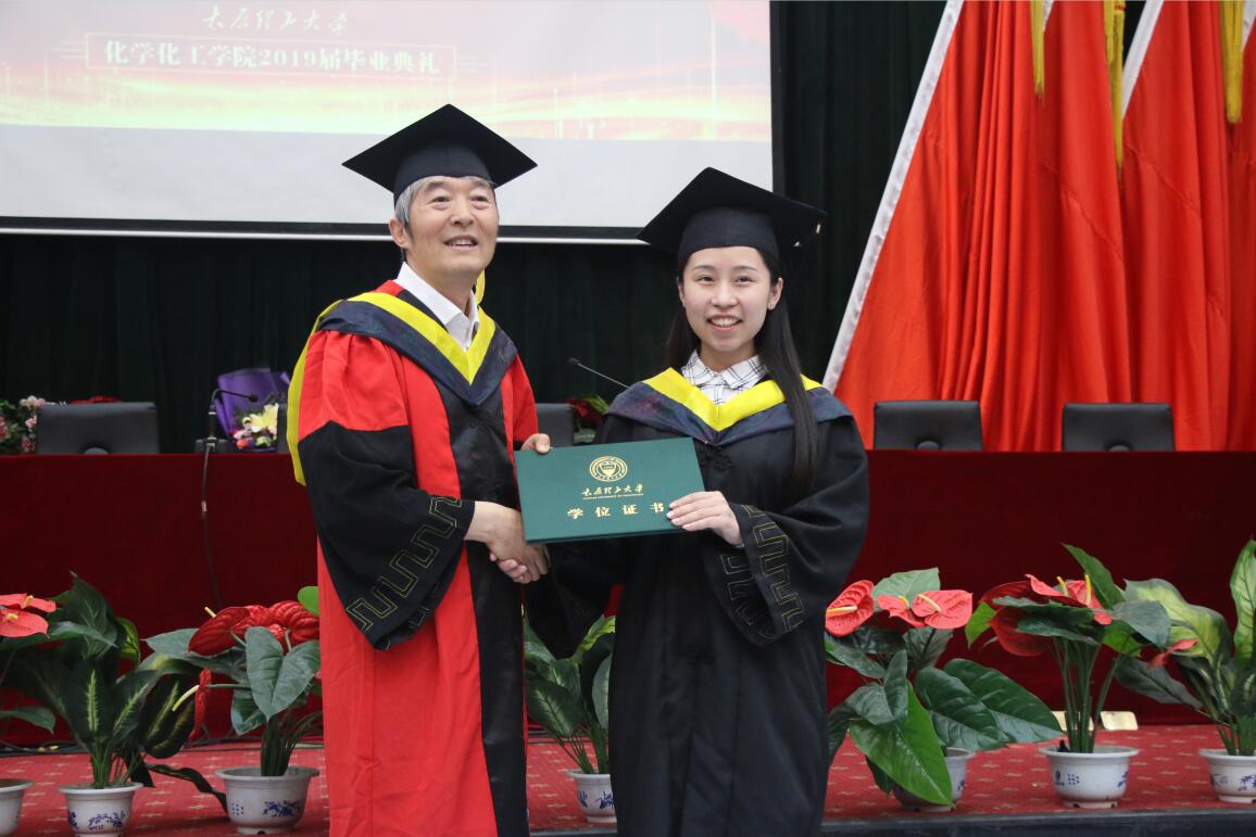 毕业典礼后,举行学位授予仪式。学科评定分委员会委员王建成宣读学位授予决定,学科学位评定分委员会主席、化学M88mansion体育经理董晋湘教授为毕业生一一拨穗正冠,授予学位。