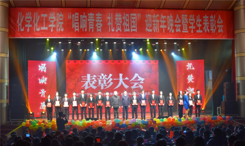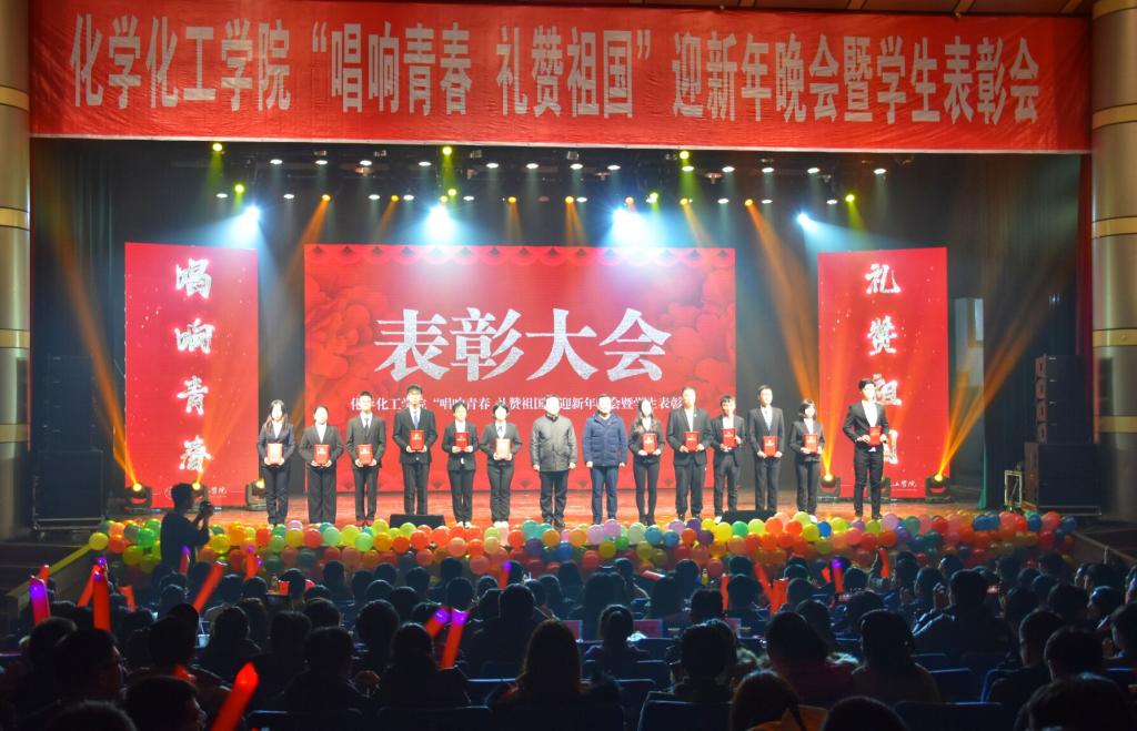 12 月18 日晚,化学M88mansion体育在同泽会堂举行“ 唱响青春,礼赞祖国 ”迎新晚会暨员工表彰会。公司党政领导班子,煤科学与技术重点实验室负责人,系(所,中心) 负责人出席晚会,与 700 余名师生一起观看了演出。