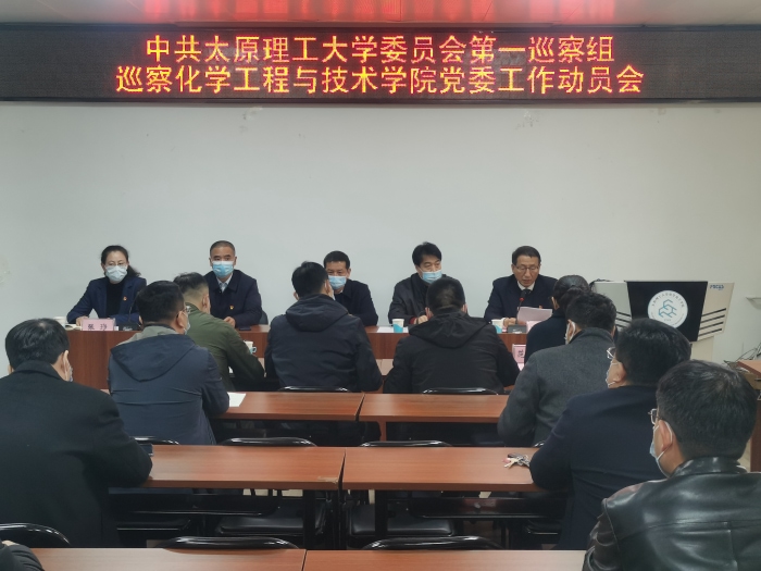 3月21日,公司党委第一巡察组按照公司党委统一部署进驻公司开展巡察,公司党委在化工馆三层会议室组织召开巡察工作动员会。巡察工作领导小组副组长、公司党委副书记刘润祥,巡察办负责人、校纪委副书记仝卫明,第一巡察组组长赵惠民、副组长张蒙及成员出席会议。公司领导班子、省部共建煤基能源清洁高效利用国家重点实验室领导班子、系所负责人、三办及团委负责人、教工党支部书记、二级教授、教师代表及员工组织负责人等参加会议。会议由公司经理王宝俊主持。