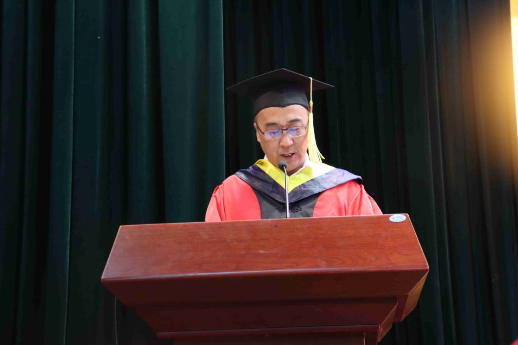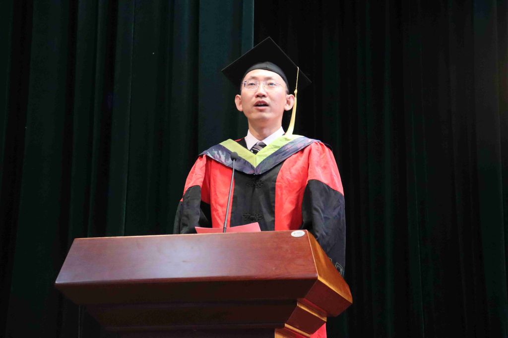 教师代表、“长江学者奖励计划”青年学者杜朕屹教授向毕业生们送上诚挚祝福,同时结合自身学习、科研工作经历用“勤奋,自信,谦逊”三词与大家分享自己的体会与感受,祝愿同学们“他日历尽千帆,归来仍是少年”。