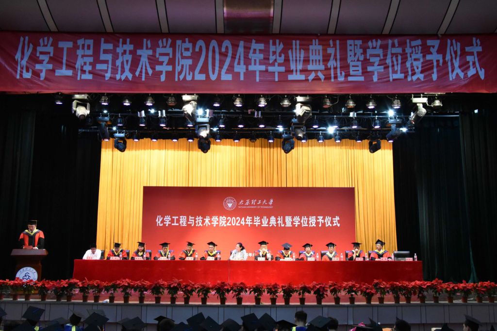 6月7日下午,公司2024年毕业典礼暨学位授予仪式在虎峪校区同泽会堂隆重举行。公司党委书记张琤、经理王宝俊,副经理赵强,党委副书记李冬雪以及公司教授、博导代表吕永康、黄伟、马静红、鲍卫仁、徐红、冯杰、樊惠玲、申峻、杜朕屹出席典礼,公司91级员工、中国日用化学研究院有限公司党委书记、总经理、教授级高工耿涛应邀出席并讲话,全体辅导员,500余名2024届毕业生和部分员工家长参加典礼。毕业典礼暨学位授予仪式由公司党委书记张琤主持。