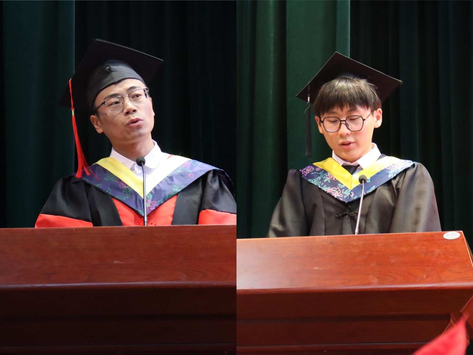 本科生毕业生代表岳慧强、研究生毕业生代表刘普旭分别发言,代表全体毕业生向公司领导和老师们致以崇高的敬意和诚挚的感谢。表示不论身在何方,都将以“允公允能,求实奋进”的院训为动力,永远做“求实 创新”校训精神的传人,踔厉奋发,脚踏实地,将青春奉献到祖国最需要的地方。