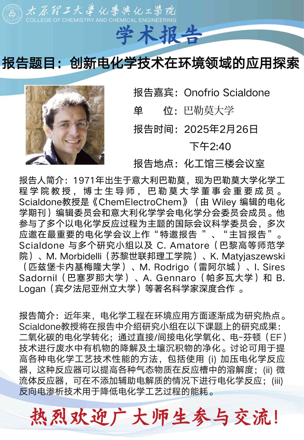 意大利巴勒莫大学Onofrio Scialdone教授应邀来公司作学术报告
