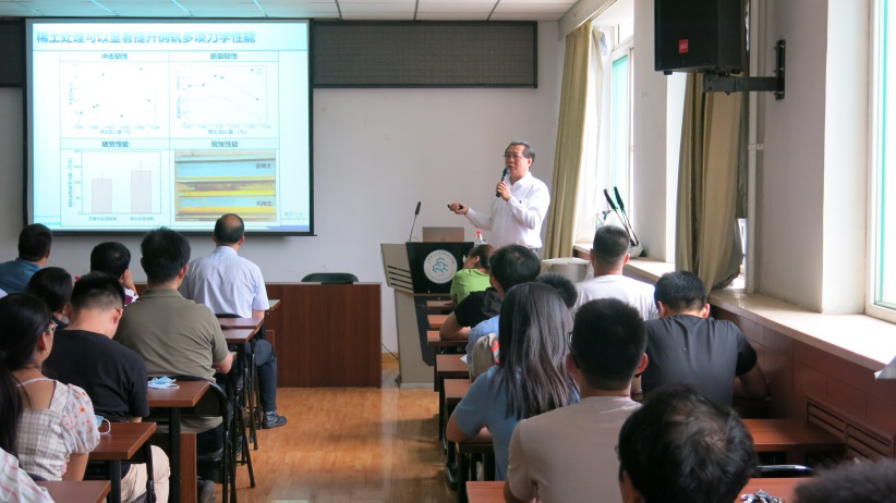 报告中,张立峰教授首先介绍了我国的铁路建设尤其是高速铁路、重载铁路建设近年来的发展状况,高速铁路和重载铁路极大地促进了我国的人口流动和货物运输,但高速和重载铁路用钢轨的安全性和使用寿命仍存在不足。非金属夹杂物指的是高炉碳还原炼铁工艺生产的钢产品中夹杂有氧化物、硅酸盐、氮化物等非金属物质,过量的非金属夹杂物会导致钢轨发生疲劳断裂。张立峰教授及其团队围绕这一难题做了大量的工作,提出了在炼钢过程中要控制成分精准化、洁净化、均质化和细晶化的解决思路,得到了高品质钢轨,使钢轨探伤不合格率从0.3降至0.1以下。张立峰教授还介绍了大方抷结晶器弱电磁搅拌和末端轻压下协同均质化技术、重载钢轨连铸抷控温缓冷除氢技术、稀土处理钢轨性能提升等相关技术。