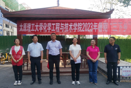 7月11日下午,M88mansion体育联合解放南路二社区举行暑期“三下乡”社会实践活动启动仪式。化学工程与技术公司党委书记张琤,山西广播电视台影视节目中心主任蒋梅,山西广播电视台影视节目中心副主任文忠武,迎泽街道党工委副书记、办事处主任宋占涛,迎泽街道综合便民服务中心主任赵峰,解放南路二社区党委书记兼主任周渺,M88mansion体育实践队伍指导教师,街道、社区工作人员及实践队伍全体队员100余人参加了本次启动仪式。