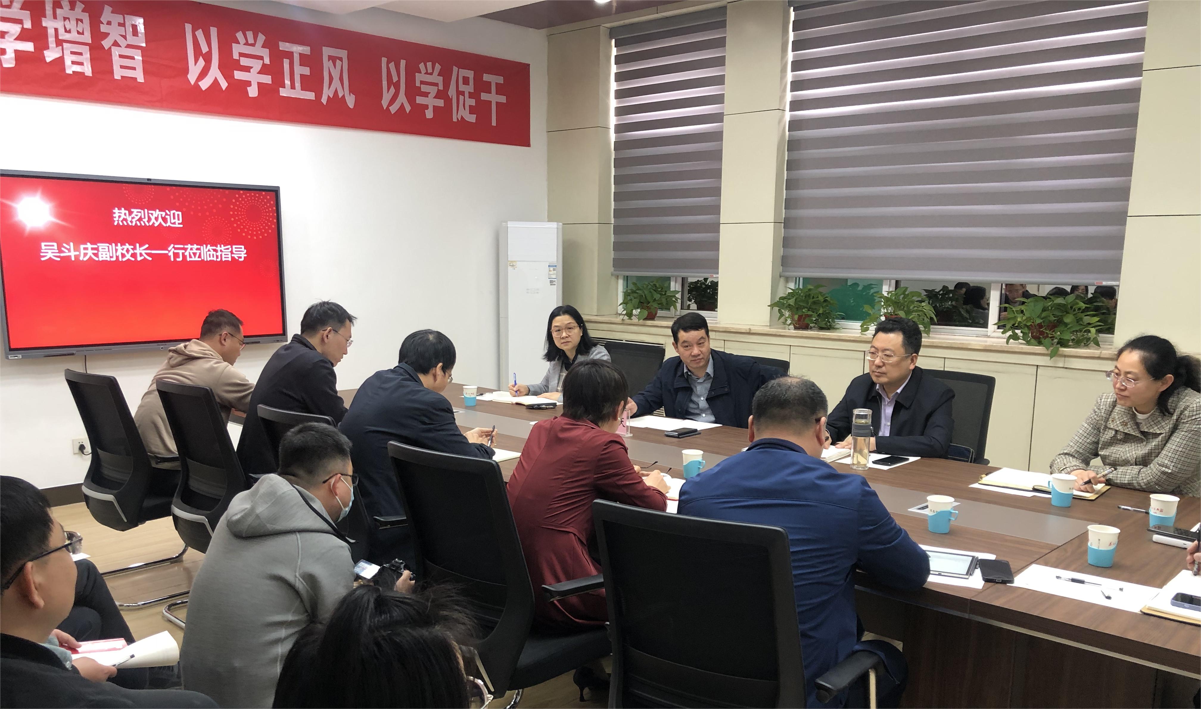 5月9日下午,公司党委常委、副董事长吴斗庆莅临公司调研指导,人事处李灯熬处长及相关人员陪同调研。公司班子成员、系所主任、三办主任和教师代表参加了调研会。会议由公司党委书记张琤主持。