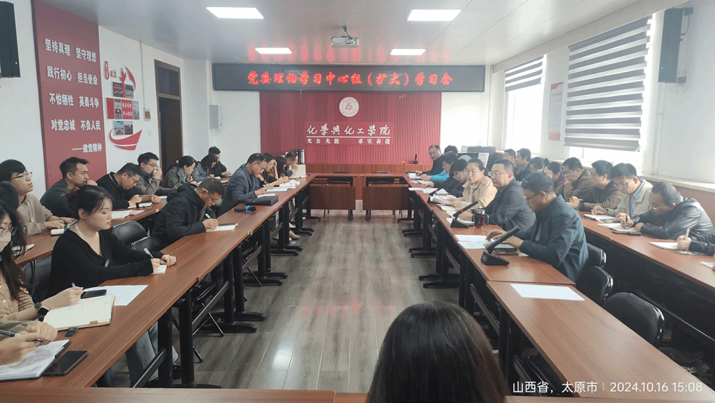 10月16日下午,公司党委在化工馆三层会议室召开党委理论学习中心组(扩大)学习会,公司党委理论学习中心组成员、各党支部书记、各部门相关负责人参加会议,会议由党委书记张琤主持。
