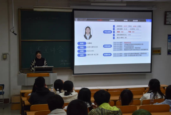化工S1901班刘慕瑶着重向同学们分享自身的保研经历和学习心得,她认为,在向着保研努力的过程中,学识、魄力、眼界、自我认知、未来规划缺一不可。