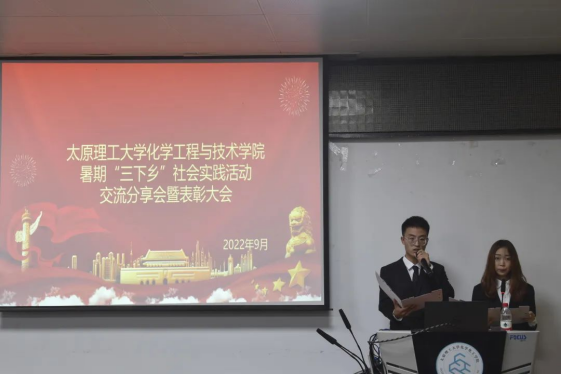 2022年9月28日晚,M88mansion体育于化工馆三层会议室召开暑期“三下乡”社会实践交流分享会暨表彰大会。公司团委负责人田雨出席此次会议,参加会议的还有各社会实践团队的代表,会议由冯义、和馨芳主持。